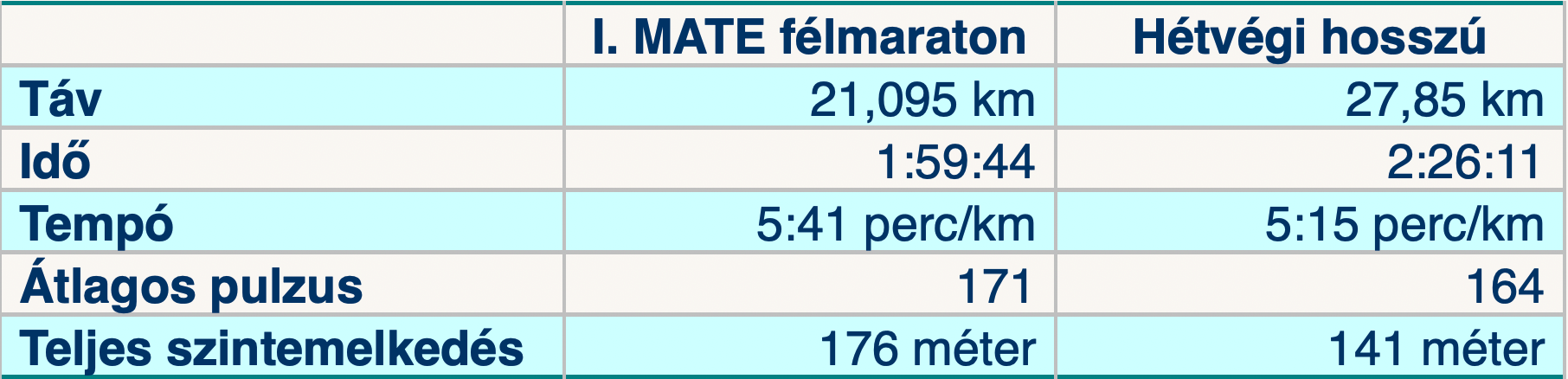 Az első két hete, az I. MATE Félmaraton volt Gödöllőn, a második pedig egy hete vasárnap, egy teljesen sima hétvégi hosszú futás.